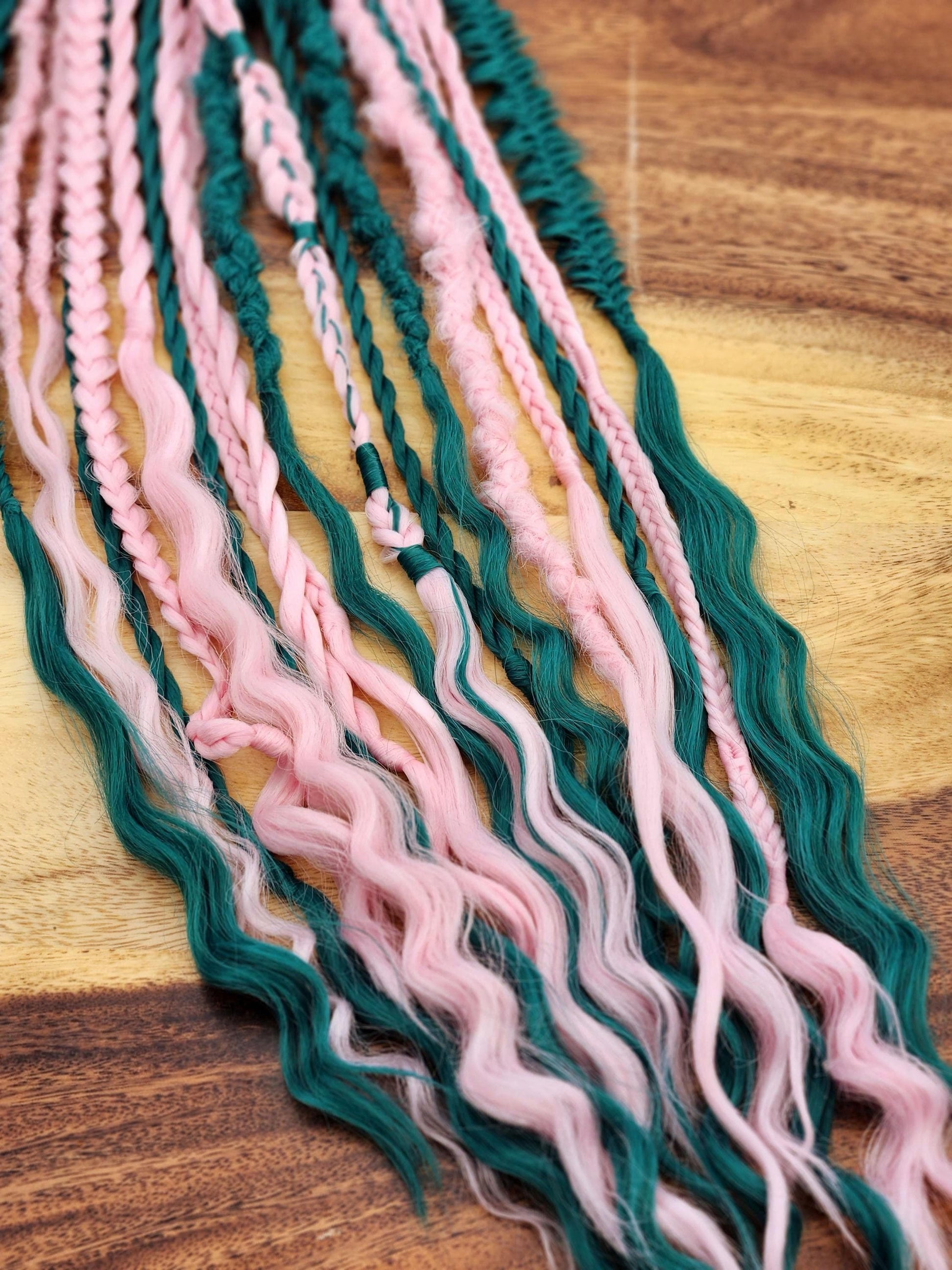 Ready to Ship Ocean Green and Pastel Pink Ready to Ship set of Dreadlocks and Braids